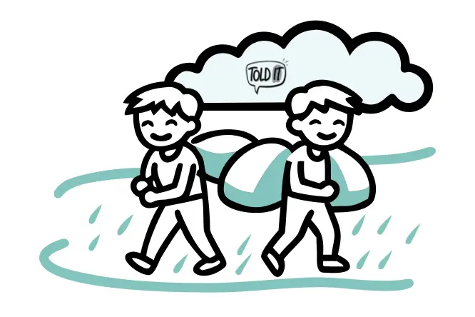 The two brothers ran, splashing through puddles, laughter echoing through the rain. By the time they stopped, the day had half slipped away.
