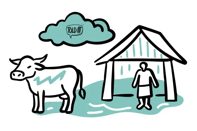 Ramu hadn’t eaten properly for days. Their little stack of hay had run out long before the month of Jaistha ended. Their roof leaked every time the clouds gathered, but still they hadn’t repaired it — because that would mean no food for Ramu.