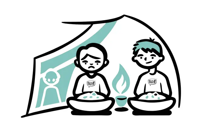 Naran giggled. “She won’t check, will she? And you heard her — there’s no food left at home.”
