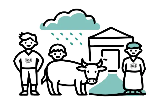 So he had packed an old torn sack in his schoolbag — perfect for carrying grass. He felt strangely happy that morning, even in the storm.