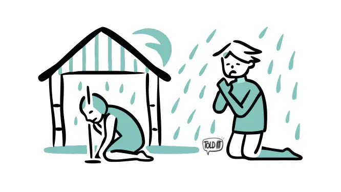 Their roof was old and patched; every monsoon, rainwater poured straight into the room. There wasn’t enough to mend it — because that would mean Ramu going hungry.