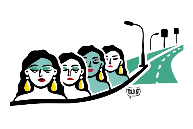Within its high walls, this tiny island hums with laughter and tears, music and pain, but from outside, none of that is visible. Beyond the wall, the world is still, except for the constant roar of passing trucks, buses, and cars. Each honk or engine rumble stirs excitement among the women behind the wall — they peek out, hoping a truck driver or helper might stop to “bless” them.