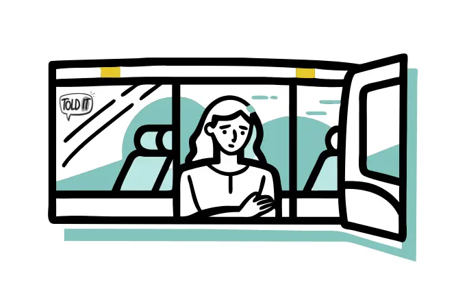 And there, too, sits the woman — that doll-like figure from last night. Her profession has no work today; her future is blank. She rides the bus not toward a workplace, but toward nowhere at all.