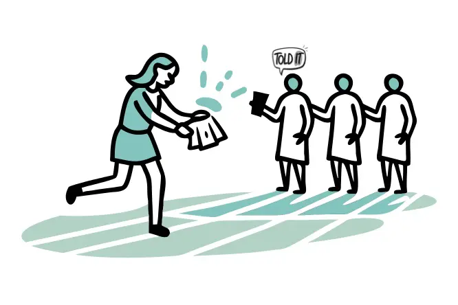 A small gang of petty thieves approaches. One notices her standing alone and, suspicious, asks, “Where are your friends? The night’s nearly over.”
