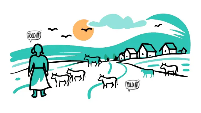 Sumita stood facing the opposite direction from where the herds were coming — meaning, the cattle and goats of the village were rushing straight toward her.
