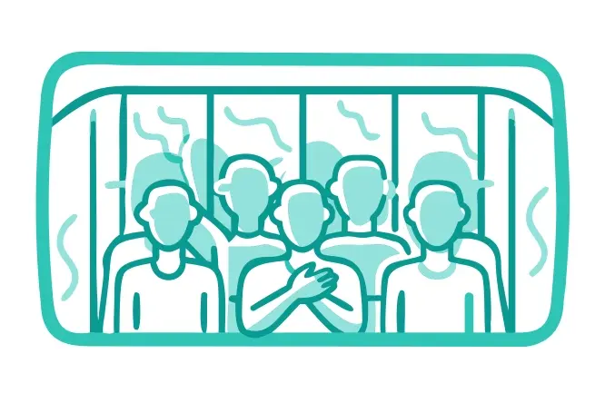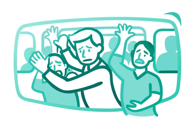 At my station, I was pushed through the crowd to disembark. Glancing over my shoulder as I departed, I saw the man still out, his son holding onto his hand.