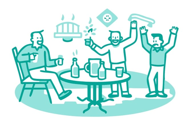 Baxter assembled his friends—Clay, Pete, Hank, and Buck—within the old saloon.